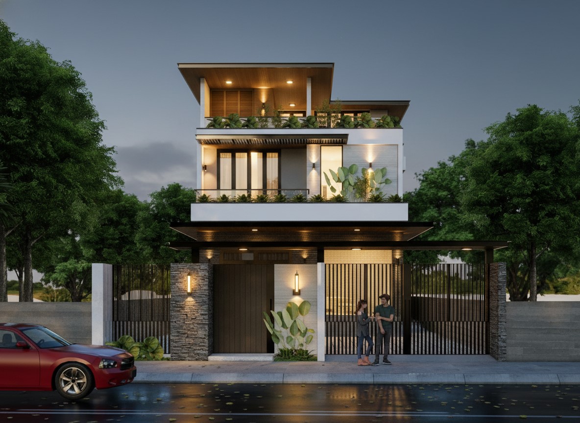 Mẫu biệt thự phố tại phố núi, hiện đại và năng động Địa điểm: tp. Buôn Mê Thuộc Designer: kts. Huỳnh Trung Hiển