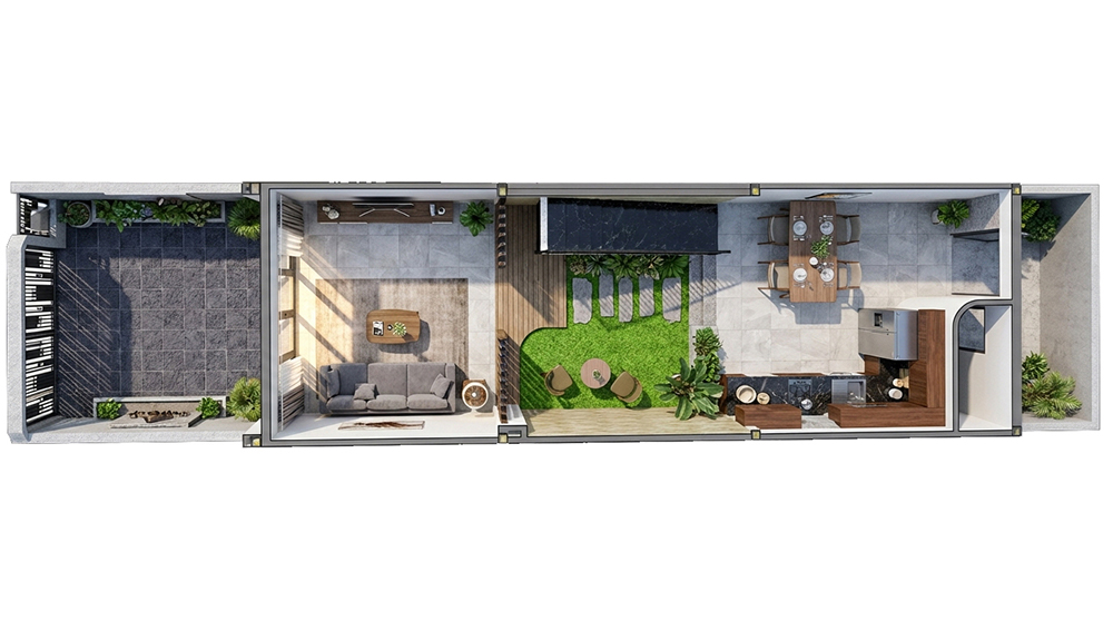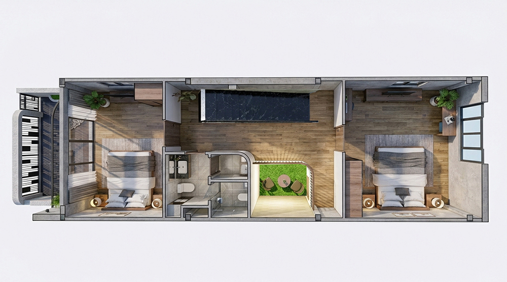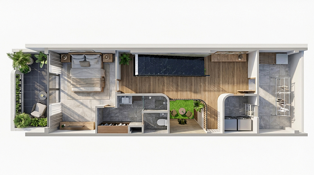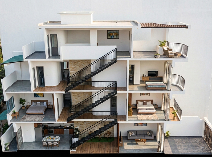 Không chỉ đẹp ở hình thức, công năng bên trong được bố trí khoa học, tối ưu diện tích, phù hợp cho gia đình trẻ yêu thích phong cách sống hiện đại, gần gũi thiên nhiên nhưng vẫn đảm bảo sự riêng tư và tiện nghi